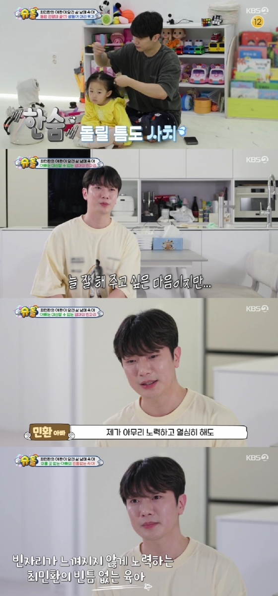 7일 방송된 KBS 2TV 예능프로그램 '슈퍼맨이 돌아왔다'(이하 '슈돌')에서는 최민환과 삼남매의 육아 일상이 공개됐다.