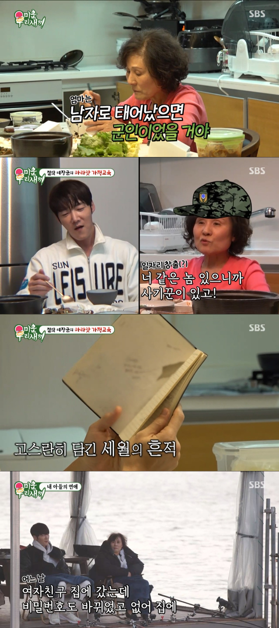 '미우새' 아들 최진혁이 어머니와의 특별한 하루를 공개했다. 어머니와의 여행을 위해 짐을 챙기는 진혁은 정작 속옷과 수건을 빼놓는 등 허당 매력을 보였다. 진혁 母는 "유치원 때부터 그러더니, 그러고 장가가면 여자가 얼마나 답답하겠냐"라며 잔소리 직격탄을 날였다. 이어 진혁의 경제관념을 지적하기 시작한 진혁 母는 "너 같은 놈이 투자하니까 버는 놈이 있어. 너 같은 놈이 있으니 사기꾼이 있는 거고"라고 말해 최진혁을 꼼짝 못 하게 만들었다. 이어 진혁 母는 "여자가 간판 보고 왔다가 얼마나 실망하겠냐"라며 잔소리 폭격을 이어가 폭소를 자아냈다. 어머니가 일기장처럼 20년간 꾸준히 써온 가계부를 들여다보며 추억에 젖은 진혁 母子의 모습에 母벤져스 모두가 감동하는 모습을 보였다.