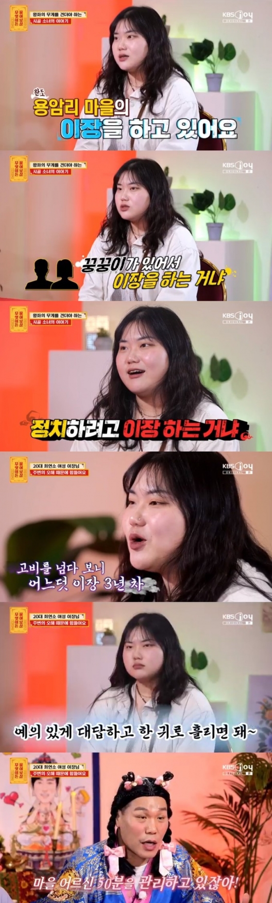 8일 오후 방송된 KBSjoy '무엇이든 물어보살'에서는 어색한 듯 부끄러워 하며 등장한 28살 김유솔 씨의 고민상담이 이뤄졌다. 김유솔 씨는 완도에서 작은 사진관을 운영하며 완도 용암리의 이장으로 활동하는 지역 유지였다.