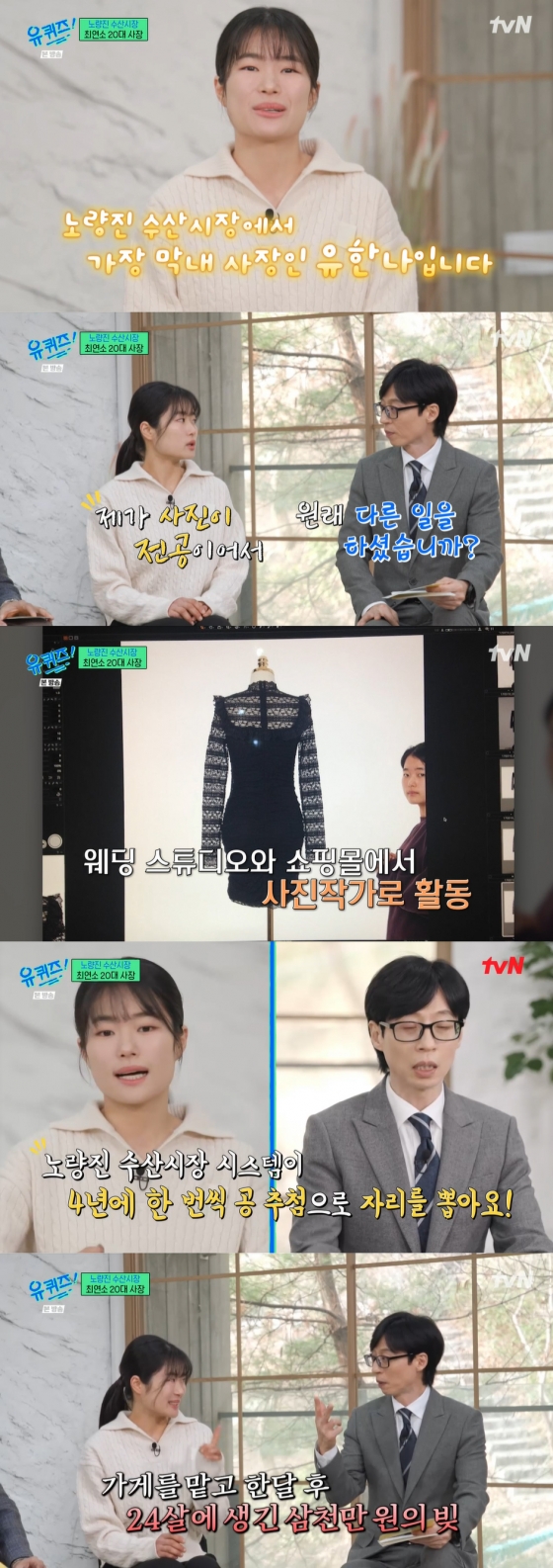 10일 방송된 tvN 예능 프로그램 '유퀴즈 온 더 블럭'에서는 노량진 수산시장의 최연소 20대 사장님 유한나 씨가 출연했다.