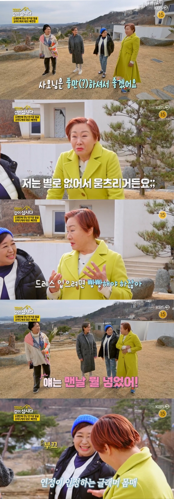 11일 오후 방송된 KBS 2TV 예능 프로그램 '박원숙의 같이 삽시다'에는 코미디계의 대모 배연정이 사선가에 방문한 장면이 그려졌다.