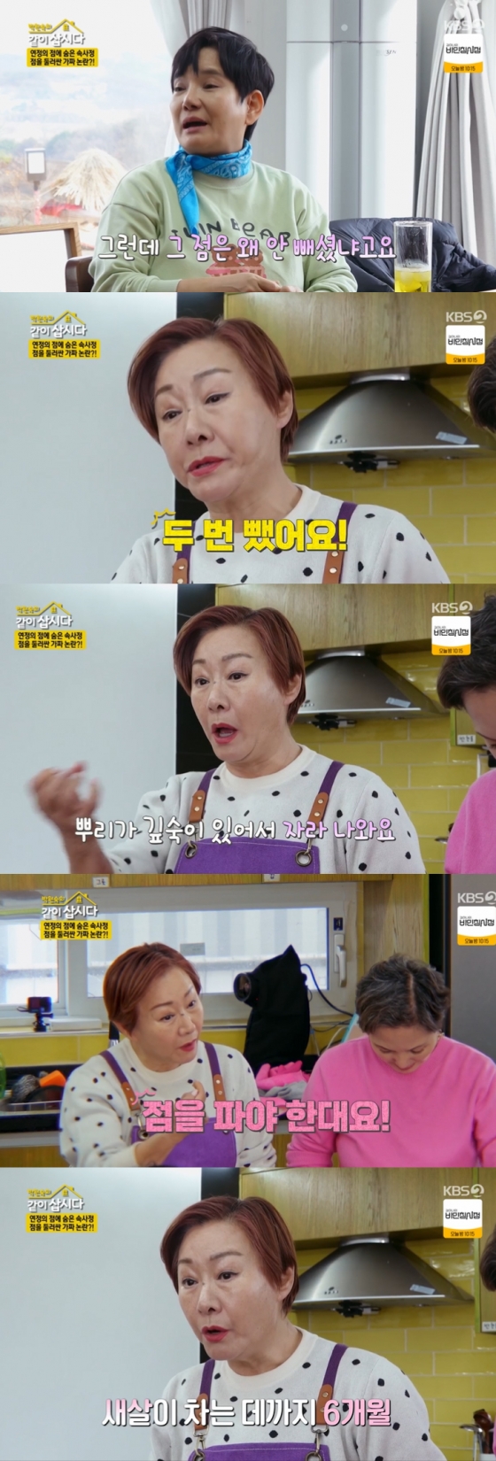 11일 오후 방송된 KBS 2TV 예능 프로그램 '박원숙의 같이 삽시다'에는 코미디계의 대모 배연정이 사선가에 방문한 장면이 그려졌다.