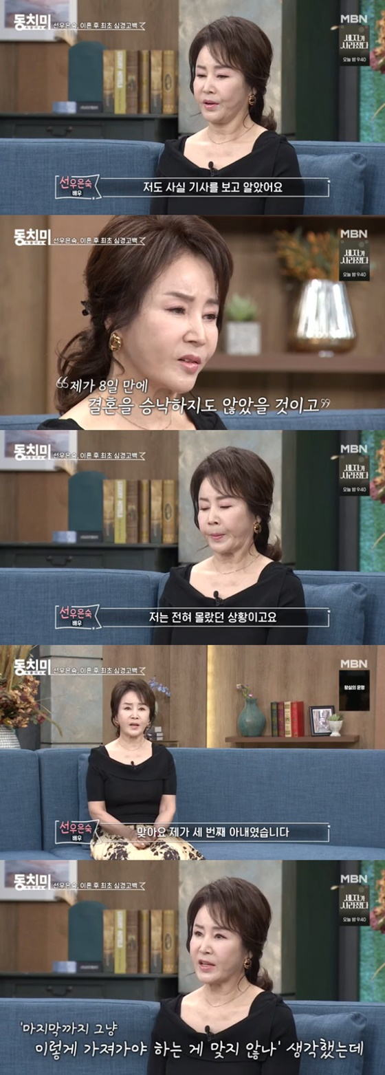 선우은숙은 '동치미'에서 이와 관련한 심경을 밝혔다. 그는 "우선 이런 자리를 통해서 여러분께 이런 소식을 전하게 돼서 정말 죄송하다"고 운을 뗐다.