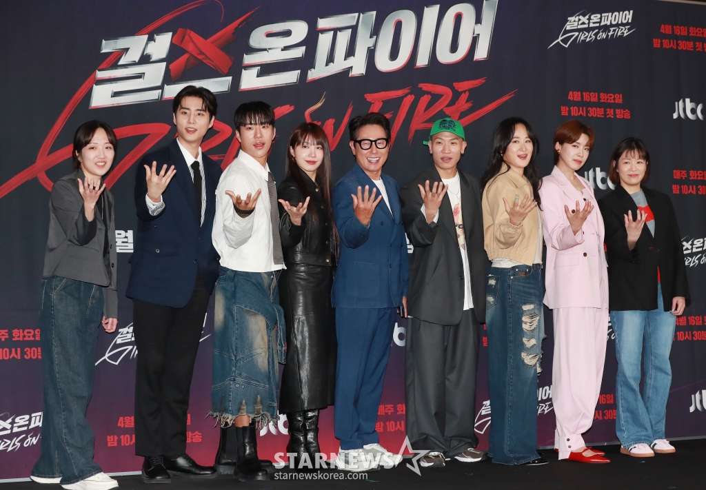16일 오후 서울 마포구 상암동 스탠포드호텔코리아 그랜드볼룸에서 JTBC 예능 프로그램 '걸스 온 파이어' 제작발표회가 열렸다. 김희정CP, MC 장도연, 프로듀서 윤종신, 개코, 선우정아, 정은지, 영케이, 킹키가 참석했다.