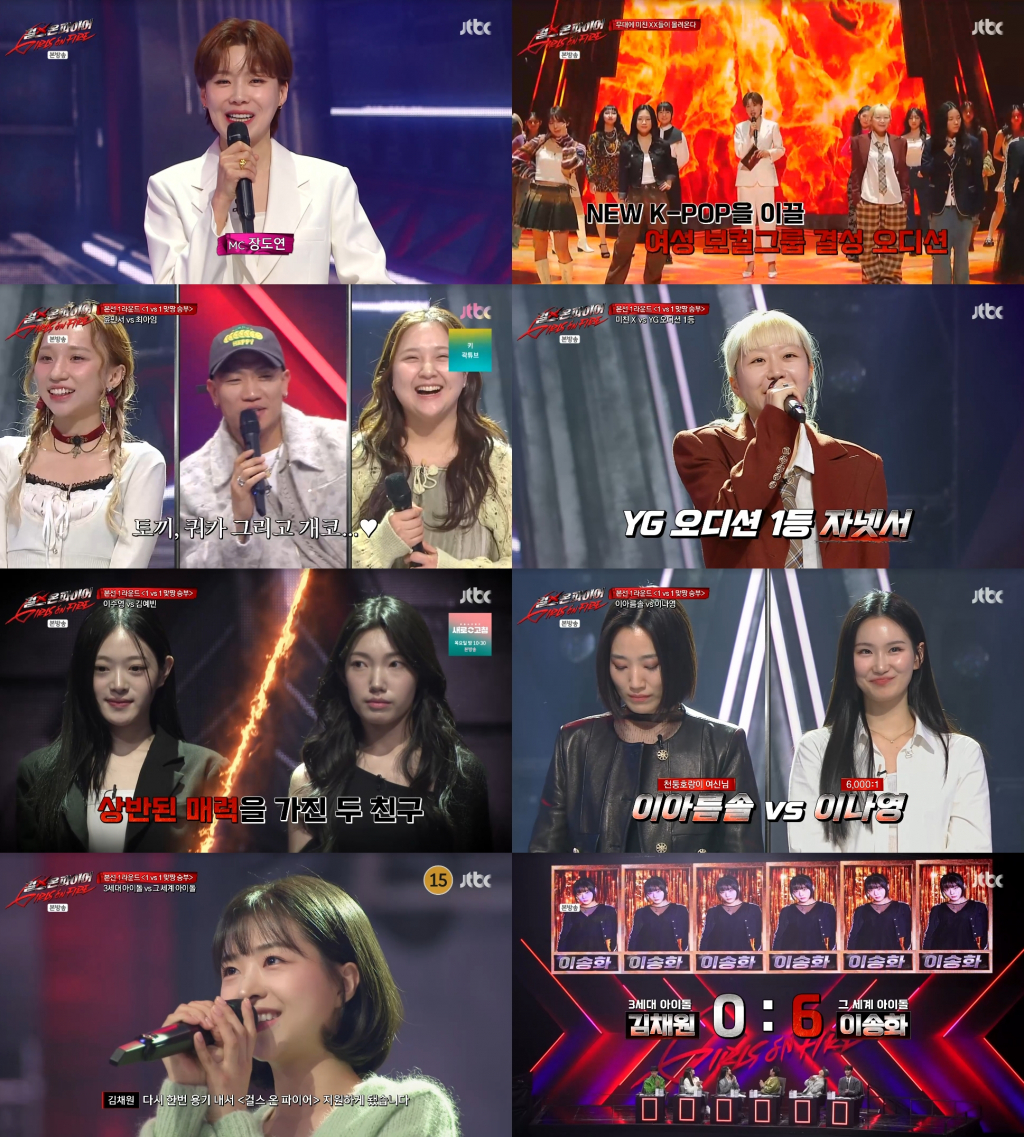 이어 대학 동기이자 4년 지기 절친 사이인 '탕후루' 이수영과 '탄산수' 김예빈, '한국뮤지컬어워즈' 조연상에 빛나는 실력자 '천둥호랑이 여신님' 이아름솔과 네 번째 오디션에 도전하는 '6,000:1' 이나영, 그룹 에이프릴 메인 보컬 출신 '3세대 아이돌' 김채원과 세계 최초 K-POP 버추얼 휴먼 아이돌 이터니티 보컬인 '그 세계 아이돌' 이송화의 대결도 진행됐다. 각자의 개성이 담긴 퍼포먼스의 향연은 듣는 재미와 보는 재미를 동시에 전했다.