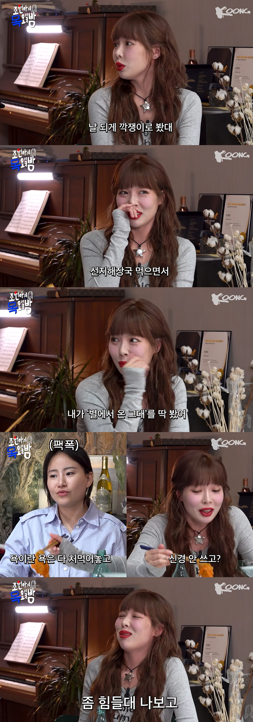이를 들은 조현아는 "너 같은 연애하고 싶다. 욕이란 욕은 다 처먹어놓고 자기 좋으면 그냥 만나는 연애"라며 현아의 연애를 부러워했다. 이에 현아는 "우리 회사에서 나보고 좀 힘들대. 그래서 미안하긴 하다. 그래도 고맙다"라며 복잡 미묘한 표정을 지었다.