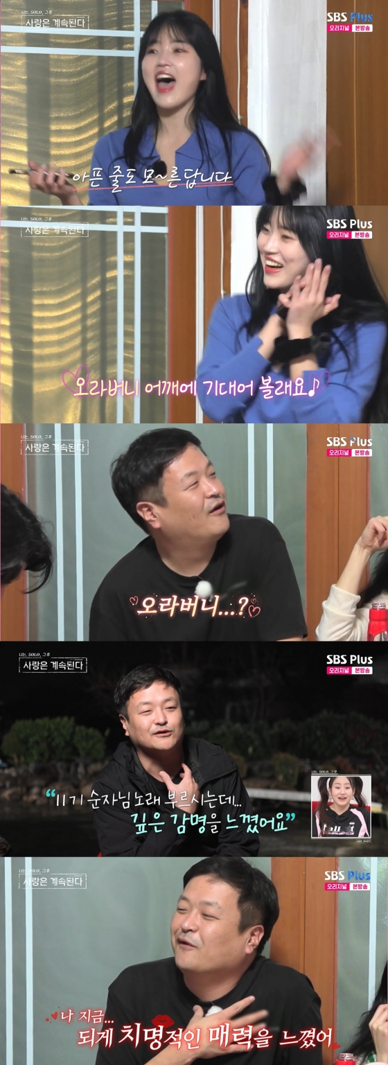 '나솔사계'에서 15기 영수가 11기 순자의 매력에 푹 빠졌다.
