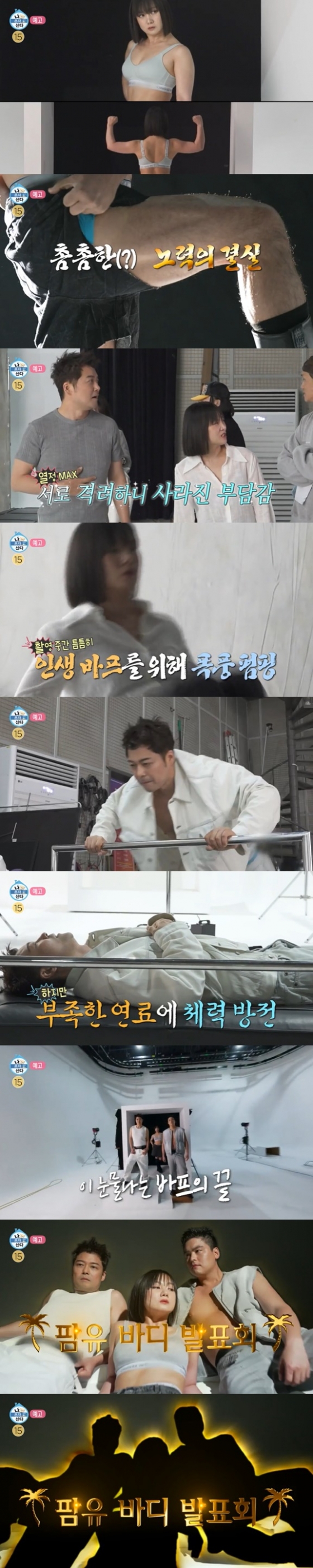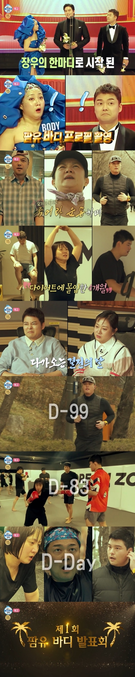 팜유즈는 4개월 동안 오기와 독기로 죽어라 운동하며 체중 감량에 도전했다. 세 사람은 큰 스케일의 스튜디오에서 보디 프로필 촬영을 했고, 박나래는 브라톱을 착용하고 슬림, 탄탄해진 몸매를 과시했다. 이에 이장우는 "누나 람보 같다"라며 놀라는 모습을 보였다.