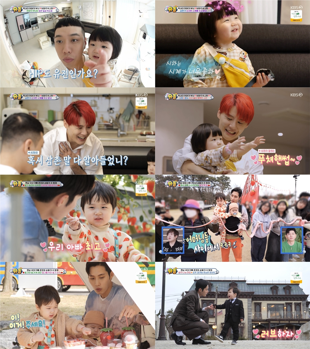 지난 21일 방송된 KBS 2TV '슈퍼맨이 돌아왔다'(이하 '슈돌') 'YO~!! 힙합 베이비가 나타났다' 편으로 꾸며졌다. 이중 비와이는 딸 시하와 첫 등장해 리듬을 즐길 줄 아는 부녀의 힙합 케미를 선보였고, 김준호-은우-정우 삼부자는 '논산 딸기 축제'에서 웃음이 끊이질 않는 힐링 타임을 가졌다.