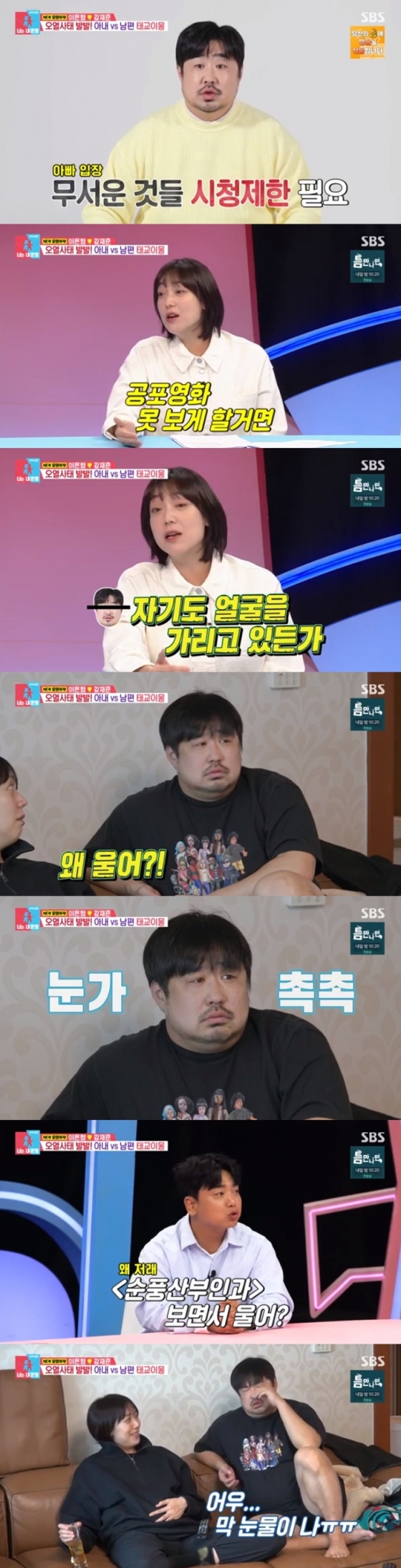 이날 방송에서 강재준은 이은형에게 "호러물을 보지 말라"며 태교를 위해 애쓰는 모습을 보였다. 이은형은 '순풍산부인과'를 권하는 남편에게 "산모가 좋아하는 걸 해야 아이도 행복한 게 아니냐. 무서운 걸 못 보게 하려면 자기도 못 보게 해야 하는 거 아니냐"고 말했다.