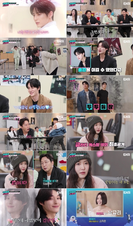 전창하가 한바탕 '폭풍'을 일으키고 떠난 가운데, 신규진은 "저스틴 비버, 브루클린 베컴, 남주혁과 함께 보그지 전세계 핫보이 50인에 선정된 하입보이"라며 장성훈을 소환했다. 연이어 '박서준 판박이男' 김한영까지 등장하자, 유정은 양 볼을 붉히며 사심을 드러냈다. 김한영은 소속사 최종 오디션에서 송강과 자주 맞붙었던 사연을 털어놓는가 하면, '박서준 닮은꼴' 평가에 대해서는 "듣긴 들었지만 저는 김한영이다"라고 당찬 매력을 내뿜었다. 장성훈 역시, 욕설이 난무한 '맑눈광' 캐릭터를 연기해 현장을 초토화시켰다.