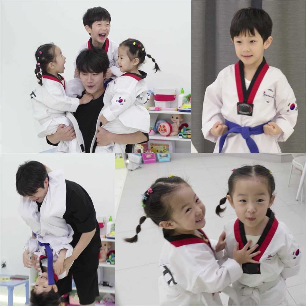 이 가운데 재율이 '꼬마 태권도 사범님'으로 변신해 쌍둥이 동생 아윤, 아린에게 태권도 기술을 전수한다. 먼저 재율은 양손으로 주먹을 불끈 쥐며 준비 자세를 취하고, 우렁차게 기합까지 내지르며 시범을 보인다. 또한 재율은 180도 다리를 찢는 기술로 남다른 유연성까지 뽐낸다.