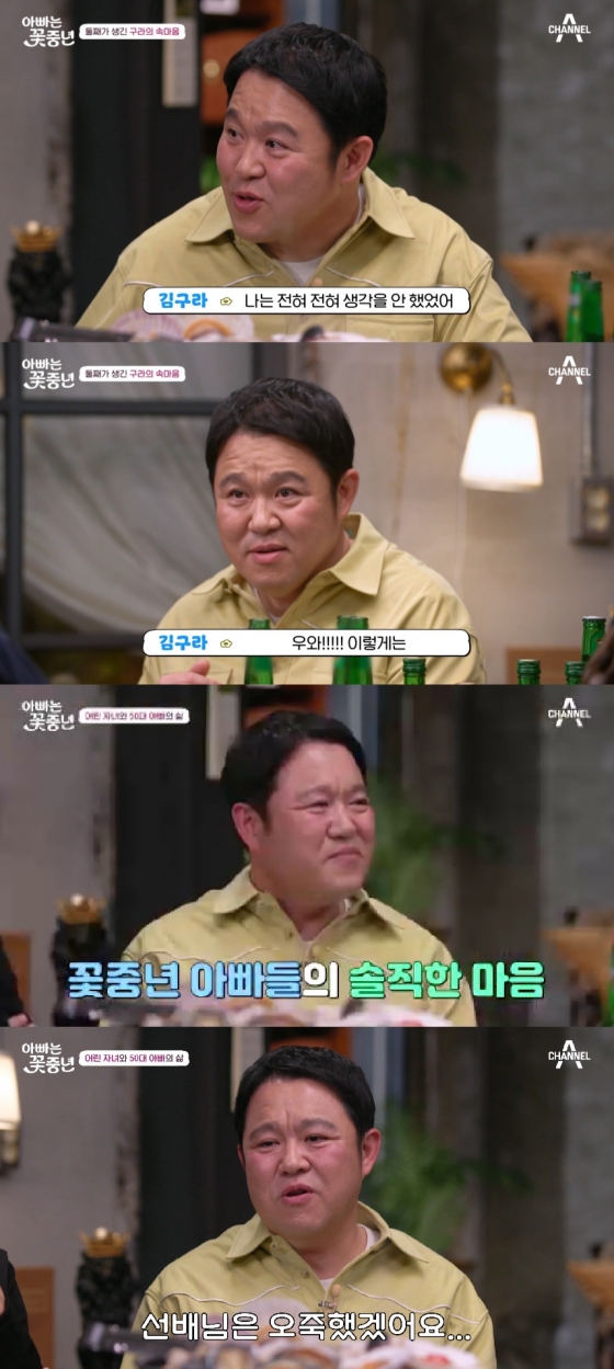 25일 방송된 채널A '아빠는 꽃중년'에서는 김용건, 김구라, 안재욱, 신성우, 김원준의 뒤풀이 현장이 그려졌다.