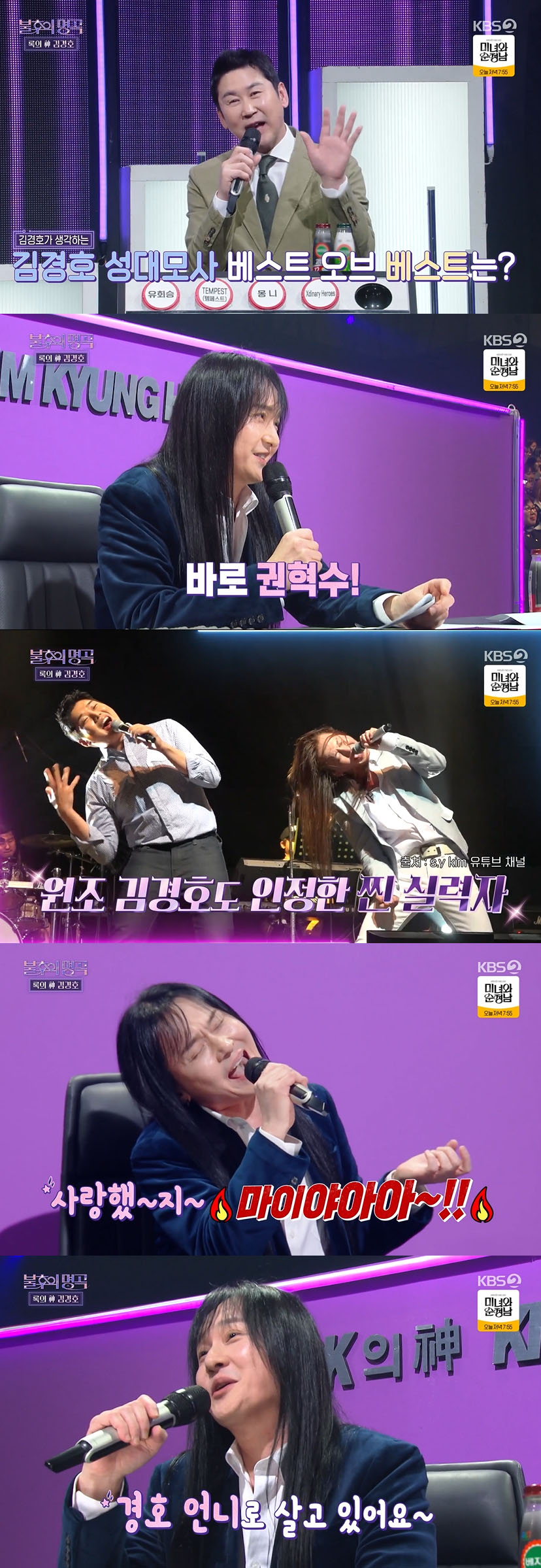 '불후의 명곡' 김경호가 자신의 성대모사 1인자를 권혁수를 꼽았다.