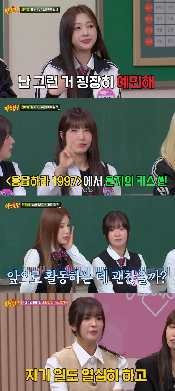 27일 방송된 JTBC 예능프로그램 '아는 형님'에서는 에이핑크 완전체가 출연해 다양한 이야기를 나눴다. 박초롱은 에이핑크가 13주년을 맞이한 데 대해 "시간이 그렇게 간 게 실감이 안 난다. 아직도 우리는 같이 활동하는 게 재밌다"고 밝혔다. 오랫동안 팀을 유지한 비결에 대해 정은지는 "팀워크가 엄청 좋은 거 같진 않다. 각자 개성이 다르고 취향이 다 다르다. 근데 케미가 좋다"고 밝혔다.