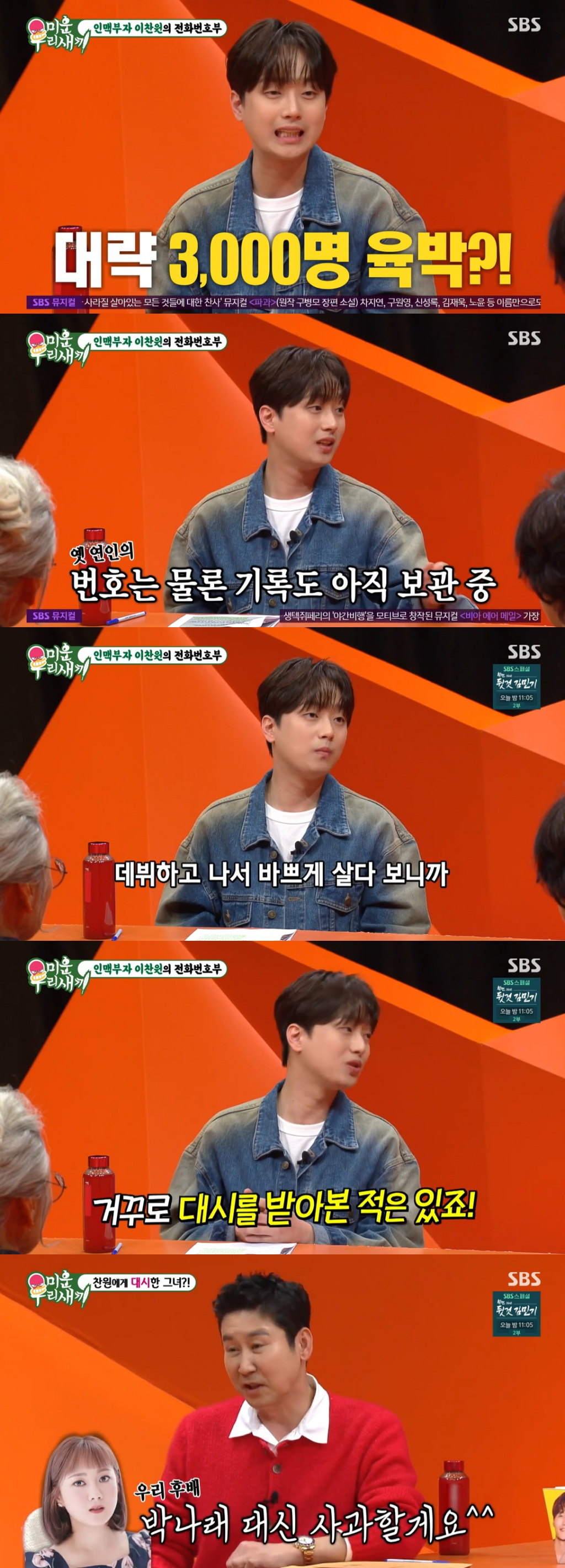 심지어 옛 연인 번호도 그대로 간직하고 있다고. 이찬원은 "예전 여자친구랑 교제할 때 남겼던 연락 기록들도 그대로 남아있다. 그때 나의 내 모습도 추억이라고 생각한다"라고 밝혔다.