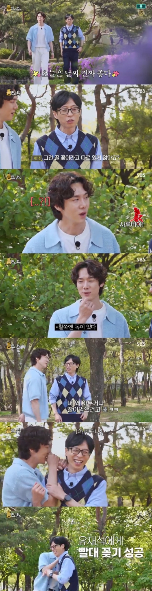유연석은 꽃을 보면서 "이거 철쭉 맞나"라고 말했다. 이어 그는 "먹어도 되는 건가?"라고 물었다.