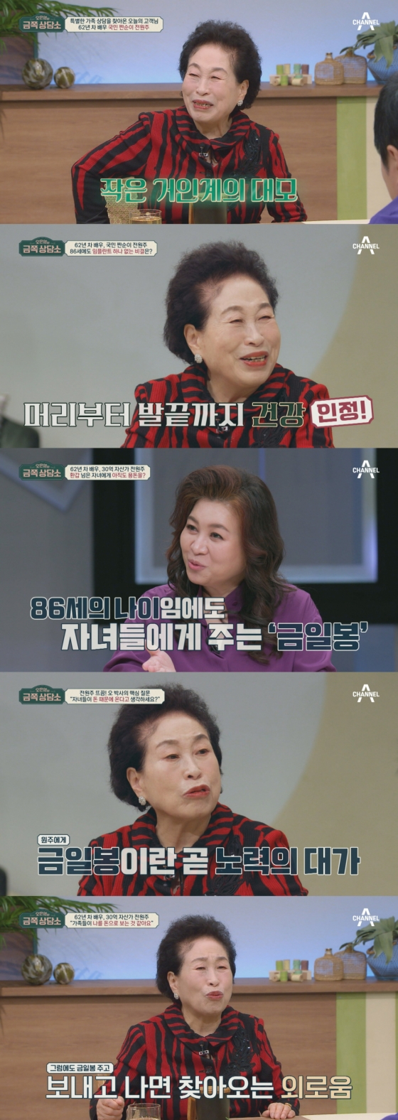 '86세' 전원주 "중년 자식에 1회 반찬값 100만 원 줘..가족들이 나를 돈으로 보는 것 같아"[금쪽상담소]