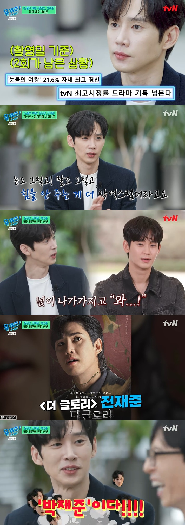 박성훈은 "수현이가 영리한 게 자기자신을 낮춘다. 어수룩하게 하고 '어허허허' 하니까 주변 동료도 분위기가 부드러워진다"며 "지원이는 정말 반장 스타일이고 너무 착하다. 가만히 있으면 간식을 주고 간다. 곽동연 씨는 웃다가 장난을 많이 쳤다"고 '눈물의 여왕' 출연배우들을 칭찬했다.