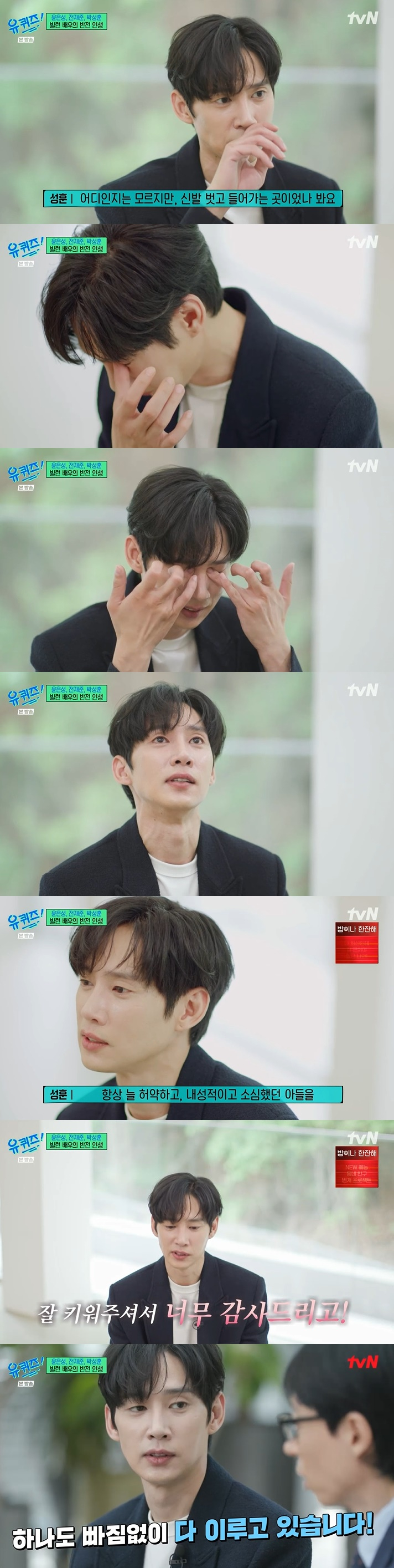 박성훈은 부모님에게 영상편지를 쓰면서 오열했다. 그는 "항상 걱정거리였던 막내아들이 요즘 많은 분의 관심도 받고 응원도 받는 배우가 돼서 이렇게 '유퀴즈'까지 출연하게 됐다. 항상 늘 허약하고 내성적이고 소심했던 아들을 잘 키워주셔서 감사하다. 덕분에 한 가지 목표만 보면서 지금까지 열심히 달려올 수 있었다"라고 전했다.