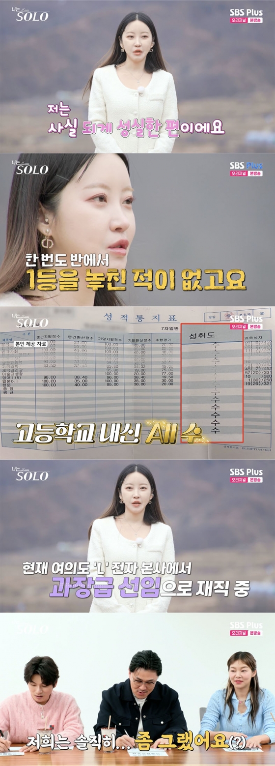 둘째 날, 솔로 남녀들의 자기소개 시간이 시작됐다. 가장 먼저 91년 생 만 32세 영숙이 본인을 소개했다. 그는 고려대학교 경제학과 졸업 후 현대 제철에서 근무 중이라고 밝혔다.