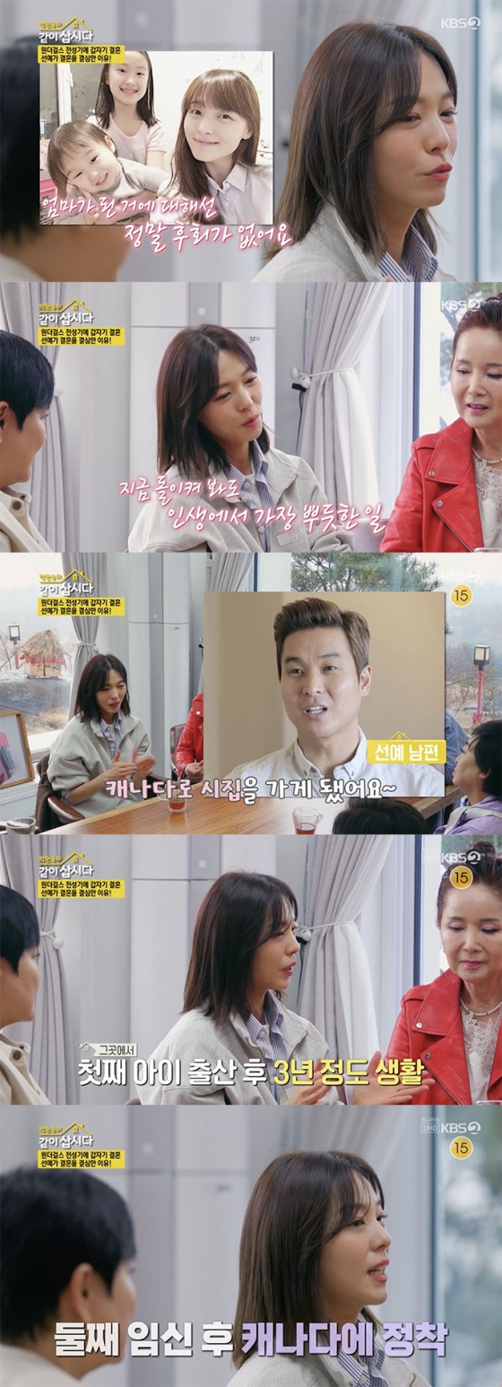 2일 방송된 KBS 2TV 예능 프로그램 '박원숙의 같이 삽시다'에서는 뮤지컬 '친정엄마'에 출연 중인 가수 선예와 배우 이효춘이 사선가에 방문했다.