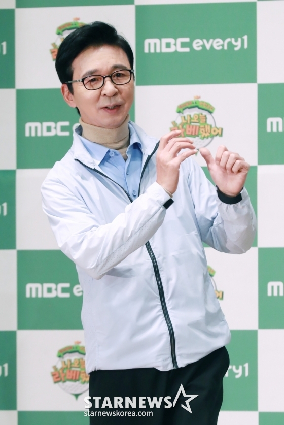 코미디언 김국진이 7일 오전 서울 동대문구 앰배서더 풀만 호텔에서 진행된 MBC에브리원 예능 '나 오늘 라베했어' 제작발표회에 참석해 포즈를 취하고 있다. /2024.05.07