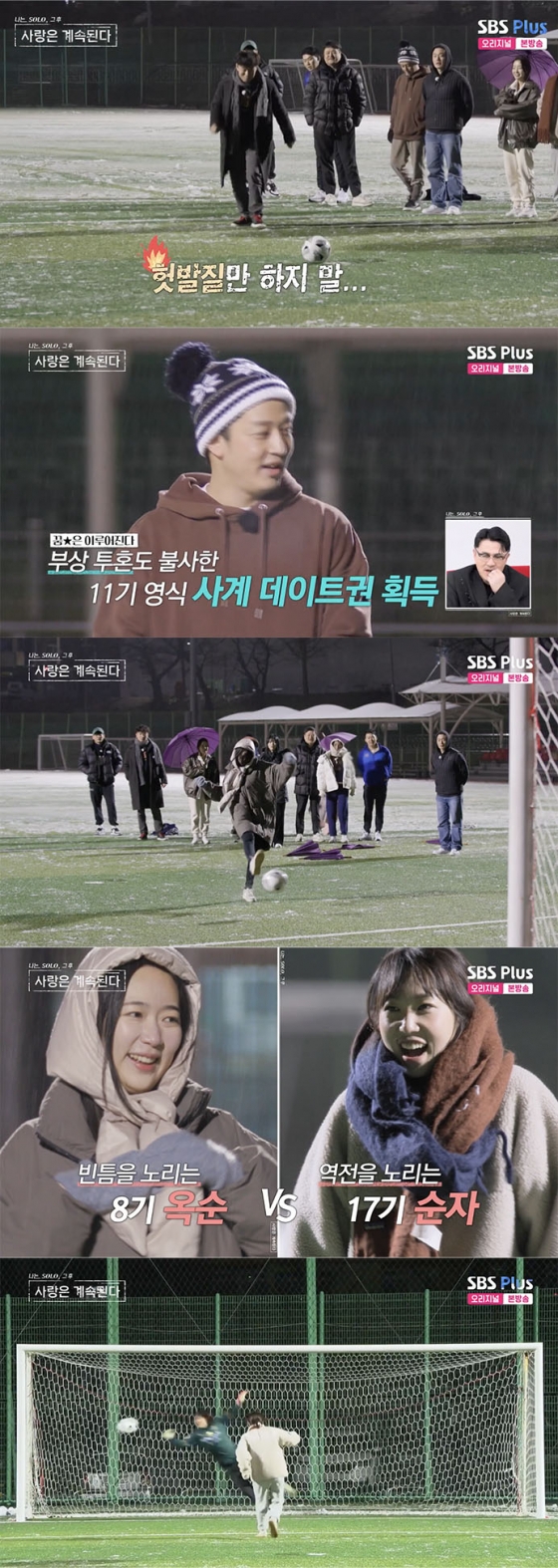 가장 마지막으로 도전한 축구 모임 주장 출신 11기 영식도 13기 광수에 이어 골 넣기에 성공했다. 남성 출연진 중 최후의 1인을 가리기 위한 승부차기가 진행됐고, 13번째 승부차기 끝에 11기 영식이 데이트권을 획득했다.