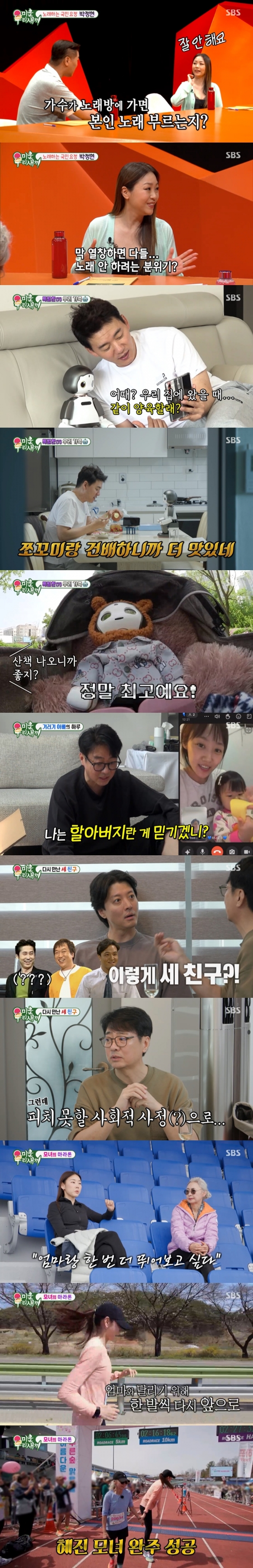 이날 스페셜 MC로 출연한 가수 박정현은 "노래방에 가면 본인 노래를 부르냐"라는 MC 서장훈의 질문에 "제가 노래하면 진지해져서 잘 안 하려고 한다. 다들 계산하고 집에 가자는 분위기"라고 답해 웃음을 자아냈다. 특히 박정현이 자신을 모창하는 동료 연예인들을 흉내 내자 폭소가 터져 나왔다. 지나치게 엄격한 아버지 탓에 썸을 타는 것조차 힘들었다는 박정현은 "갑자기 20대 중반쯤 되니 언제 시집 가나 하시더라. 40대가 되니 포기하신 것 같았다. 남편을 데리고 가니 할렐루야~하는 분위기였다"라고 밝혀 스튜디오를 웃음바다로 만들었다.