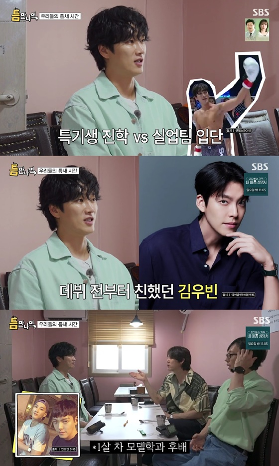 이어 "그래서 마음을 먹고 의장대로 가서 고민을 계속하다가 대학교가 모델학과로 진학했다. '키가 커서 다른 직업을 해봐라'고 해서 대구 쪽, 모델 학과를 갔다"며 "졸업 후 친구 따라 강남간다고 당시 김우빈이 '연기를 하겠다,.모델을 하겠다' '서울에 가겠다'고 해서 저도 전역 후 바로 서울로 갔다"고 말했다