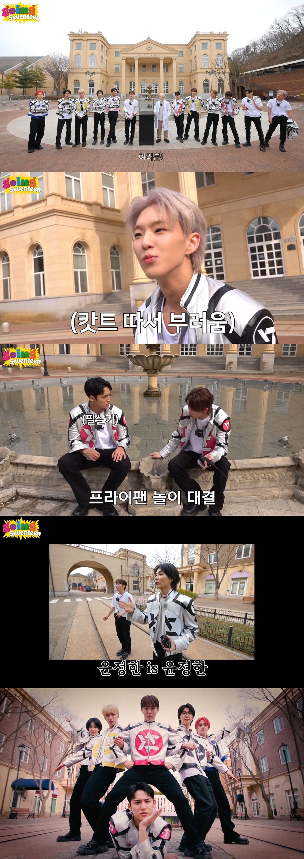 그룹 세븐틴(에스쿱스, 정한, 조슈아, 준, 호시, 원우, 우지, 디에잇, 민규, 도겸, 승관, 버논, 디노)이 자체 콘텐츠 '고잉 세븐틴'에서 결말을 예측할 수 없는 명승부를 벌였다.