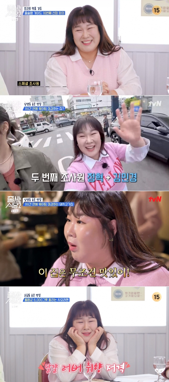 김민경은 27일 방송된 tvN '줄 서는 식당 2'에서 스페셜 조사원으로 등장해 직접 웨이팅 한 맛집을 소개했다.