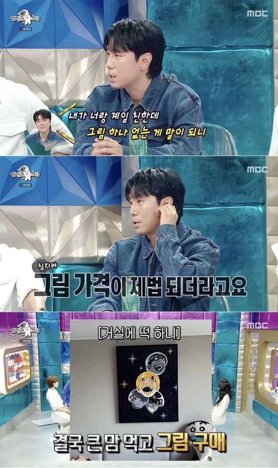 이어 이시언은 "얼마냐고 물으니까 그림 가격이 제법 되더라. 그림을 사본 적이 없었다. 그래서 작은 그림이 있는지 물어봤는데 없다 하더라. 그래도 그림을 사기로 했으니까 기분 좋게 샀다. 그런데 사무실에 놀러 갔는데 작은 그림 있더라"라고 전해 보는 이들의 웃음을 자아냈다.