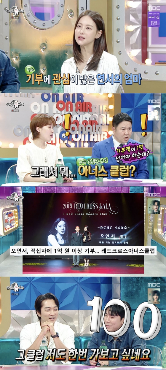 한편, 배우 오연서는 누적 기부액이 1억을 넘기며 '아너스 클럽' 회원이라고 밝혔다. 그는 "엄마가 기부에 관심이 많다. 봉사활동도 자주 하셔서 그런 부분에 영향을 많이 받았다. 그래서 연말에 기부를 자주 한다"라고 털어놨다.