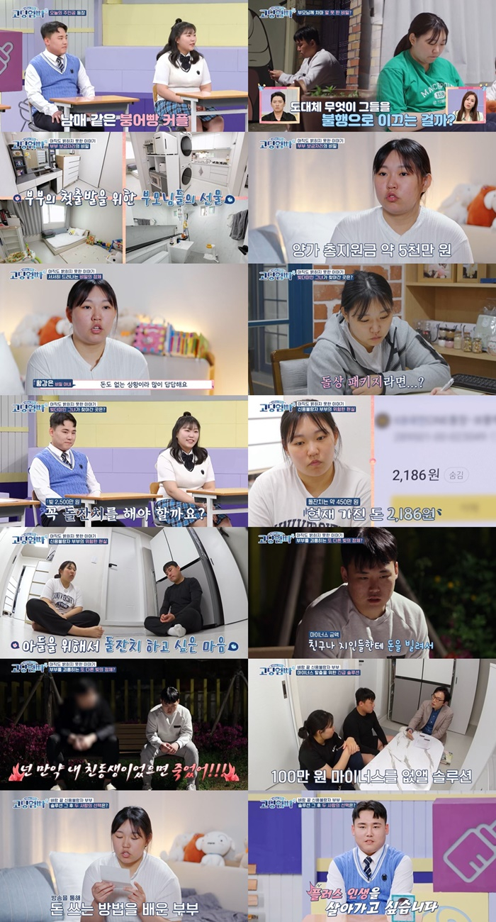 '고딩엄빠4' 황강은X이태훈 부부가 '빚 돌려막기'로 인해 눈덩이처럼 불어난 '마이너스 가계'를 고백한 뒤, 전문가의 솔루션을 받아 '빚 청산'을 위한 첫 걸음을 뗐다.