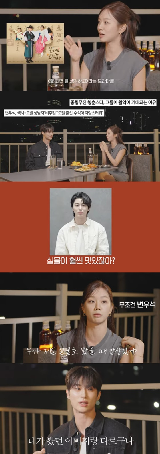 변우석과 혜리는 서로의 첫 인상을 공개했다. 혜리는 "'꽃 피면 달 생각하고' 같이 할 때 변우석이 (출연) 한다고 해서 검색을 했다. '모델 출신 배우', '유망주 같은 배우'라고 돼 있더라"고 말했다.