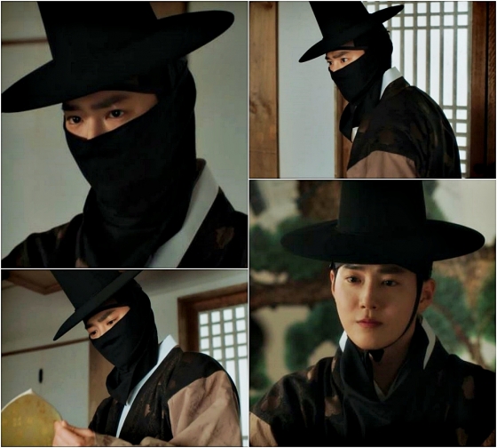 이와 관련 수호가 정체를 감추기 위해 또 한 번 검은 복면의 사나이로 변신한다. 극 중 이건이 대낮부터 누군가의 집에 잠입한 장면. 이건은 짙은 색의 한복을 입고 얼굴을 복면으로 가린 채 은밀하게 방으로 들어가 뭔가를 찾기에 열중한다. 그러다 한 서책에서 뭔가를 발견하고 카리스마 눈빛을 빛내며 의미심장한 표정을 지었다.