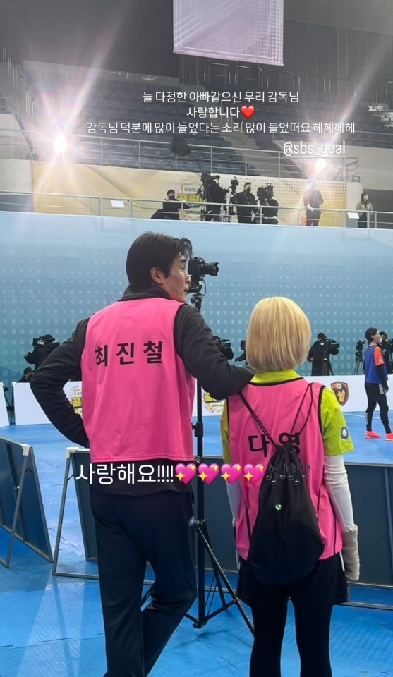 다영은 '늘 다정한 아빠 같으신 우리 감독님 사랑합니다♥ 감독님 덕분에 많이 늘었다는 소리 많이 들었어요'라며 고마움을 표했다.