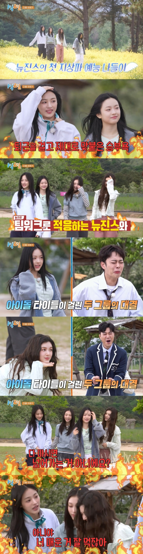 특히 뉴진스는 '1박 2일'을 통해 데뷔 후 처음으로 지상파 예능에 출연하는 만큼 남다른 열정을 자랑, '1박 2일' 멤버들을 긴장케 만들었다. 심지어 "좀 봐줄까요?"라는 딘딘의 말에도 뉴진스는 "아니에요. 제대로"라며 불꽃 배틀을 예고했다.