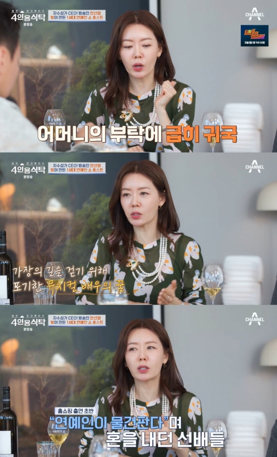 '4인용 식탁' 방송인 안선영이 과거 어머니의 빚을 갚았던 때를 털어놨다.