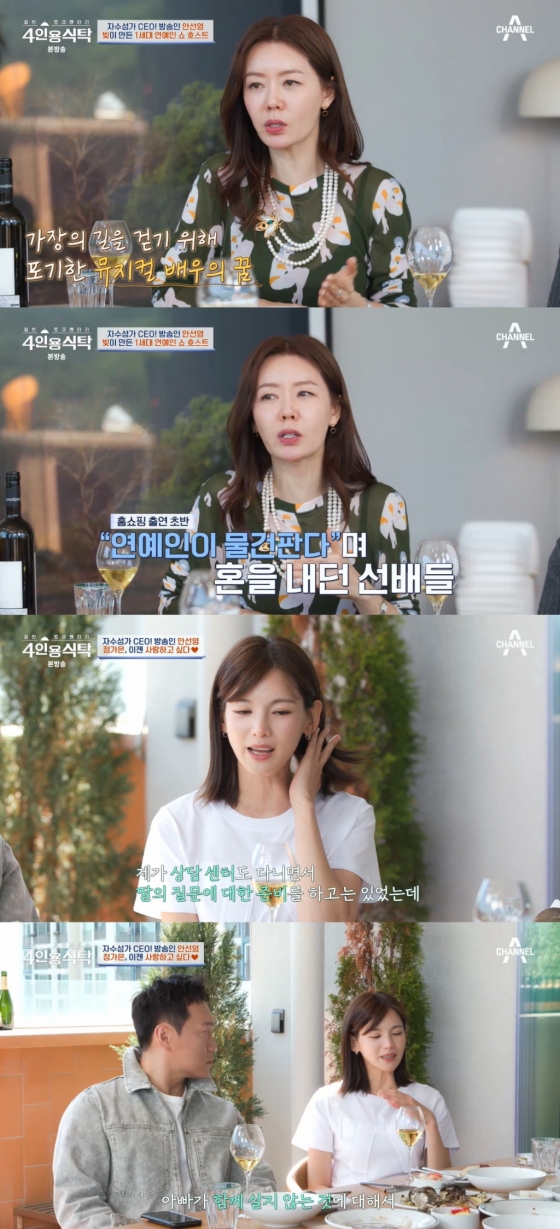 3일 방송된 채널A 예능 프로그램 '4인용 식탁'에는 안선영, 정가은 등이 게스트로 출연했다.