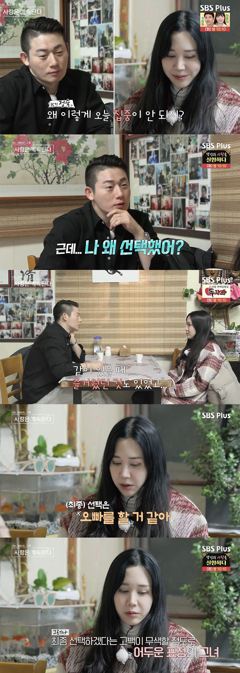 영수의 "왜 나를 선택했어?"라는 질문에 정숙은 "고마운 마음이 너무 컸고, 같이 있을 때 즐거웠던 것도 있었다. 그건 확실히 있었다"라고 답했다. 그러나 답변과 상반되는 어두운 표정에 MC 경리는 "(마음을) 못 숨기는 성격인가 보다"라고 코멘트 했다.