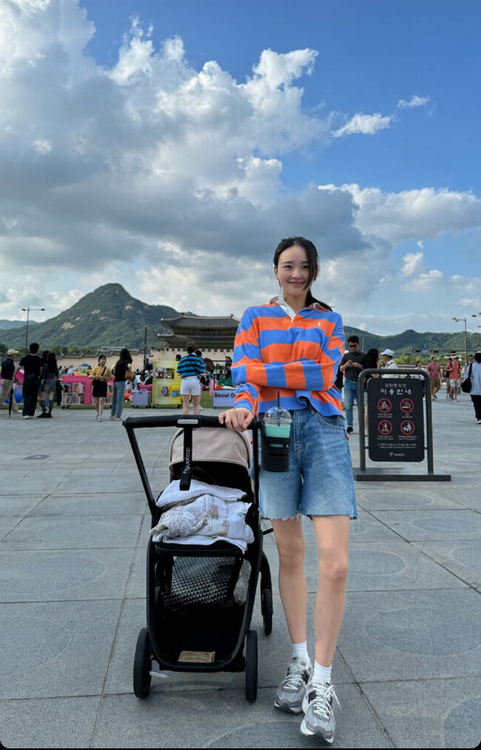 사진 속 손연재는 출산 4개월 차임에도 부기 하나 없는 모습이 눈길을 끈다. 또 손연재는 사진 속에서 유모차를 한 손으로 잡은 채 포즈를 취하고 있다. 영락없는 '엄마'의 모습이 미소를 자아낸다.
