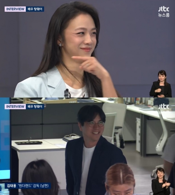 9일 방송된 JTBC '뉴스룸'에서는 탕웨이가 출연해 영화 '원더랜드'를 홍보했다.