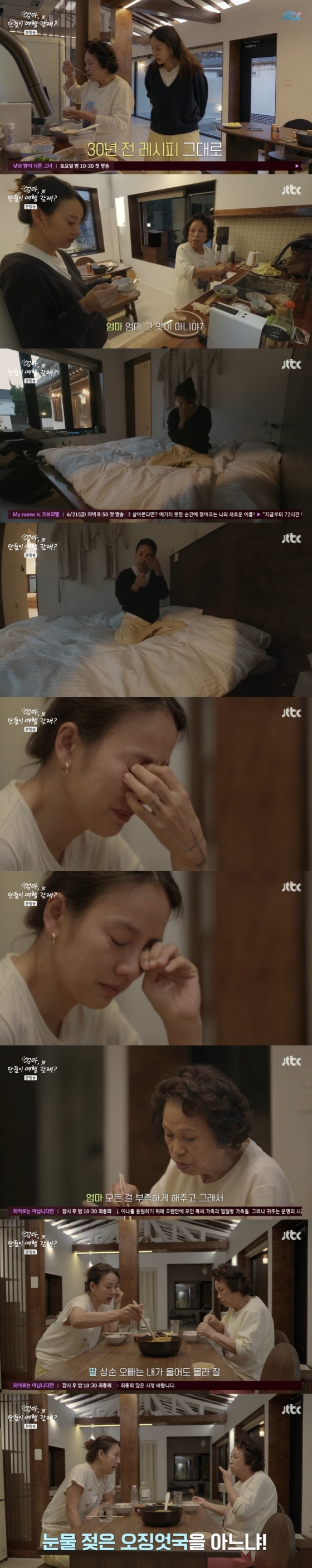 이효리는 완성된 오징엇국을 맛보고는 눈물을 터뜨렸고, 왜 그러냐는 엄마의 물음에 "이걸 맛보고는 옛날 생각이 났어"라고 말했다. 그는 "옛날 맛과 너무 똑같은데 말로 설명하기 어려운 복받치는 감정이 있었다"라고 털어놨다.