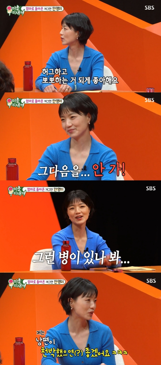 '미운 우리 새끼' 안영미가 남편의 스킨십에 불만족을 표했다.