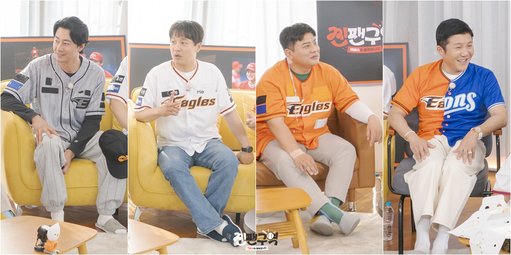 그런가 하면 이날 '찐팬구역' 멤버 차태현이 선보인 유니폼은 이글스의 평일 홈 유니폼인 흰색 유니폼. 차태현은 깔끔하면서도 편한 '아빠 찐팬' 무드로 조인성과는 또 다른 유니폼 스타일을 소화한다. 김태균은 '이글스 레전드' 답게 이글스의 상징인 주황색 주말 홈 유니폼으로 스타일링 해 '이글스 영구결번' 다운 면모를 뽐낸다고. 이에 '낀팬' 조세호의 반반 유니폼까지 더하며, 가지각색의 매력을 자랑하는 이글스 유니폼 세계관으로 또 다른 볼거리를 선사한다.