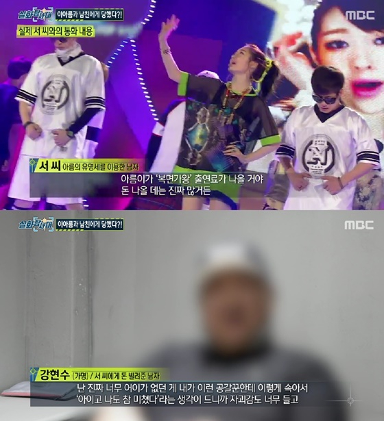 13일 오후 방송된 MBC '실화탐사대'에서는 '걸그룹 출신 그녀와 남자친구' 편으로 꾸며져 티아라 출신 이아름과 전 남자친구 서 씨를 둘러싼 사기 행각이 그려졌다.