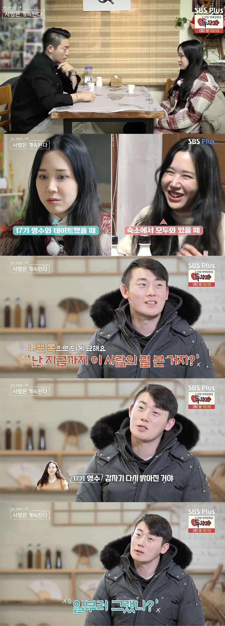 13일 오후 방송된 SBS플러스, ENA 예능 프로그램 '나는 SOLO, 그 후 사랑은 계속된다'(이하 '나솔사계')에서는 17기 영수가 돌변한 15기 정숙의 태도에 실망감을 드러낸 장면이 그려졌다.