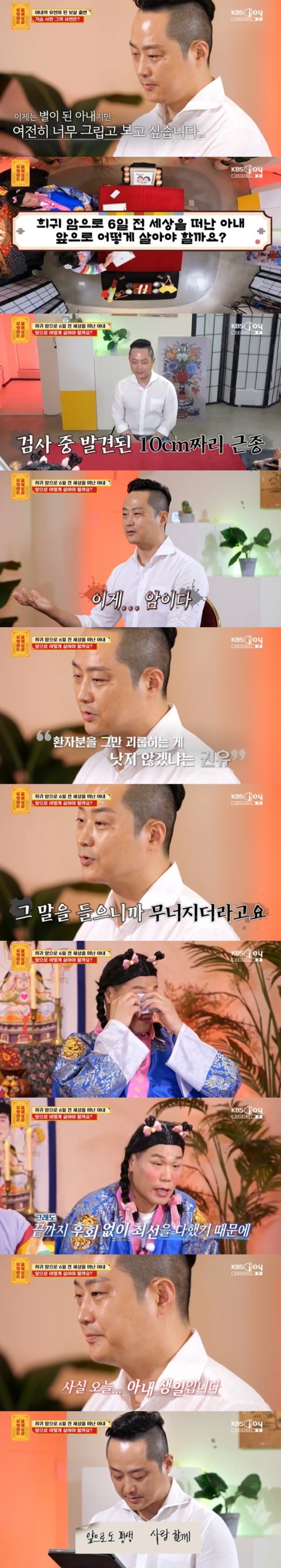 17일 오후 방송된 KBS JOY 예능 프로그램 '무엇이든 물어보살'에는 4년 암 투병 끝에 아내를 떠나보낸 남편의 안타까운 사연이 공개됐다.